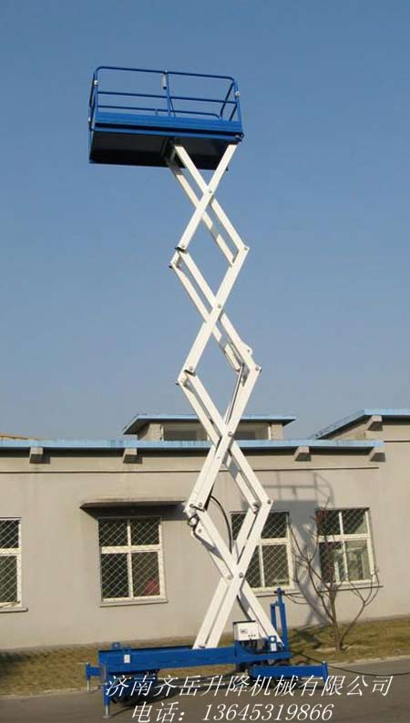 移動式升降(jiàng)機是用(yòng)途廣泛的高空作業專用設備,它的剪叉機械(xiè)結構,使升降台起升(shēng)有較高的穩定性,寬大的作業平台和較高的承載(zǎi)能力,使高空作業範(fàn)圍更大(dà)、並適合(hé)多人同時作業。升降動力分為220V或380V電源,柴油機,或電瓶動力(lì)源,特殊(shū)環境也可采用(yòng)防(fáng)爆泵站及防爆電器。升高(gāo)4—22米,載重0.3—3噸。采用意大利和國產液壓泵站,台(tái)麵使(shǐ)用防滑絕緣扣板,具有防滑,絕緣、安全,請放心使用。它使高空作業(yè)效率(lǜ)更高,安全更(gèng)保障(zhàng)。