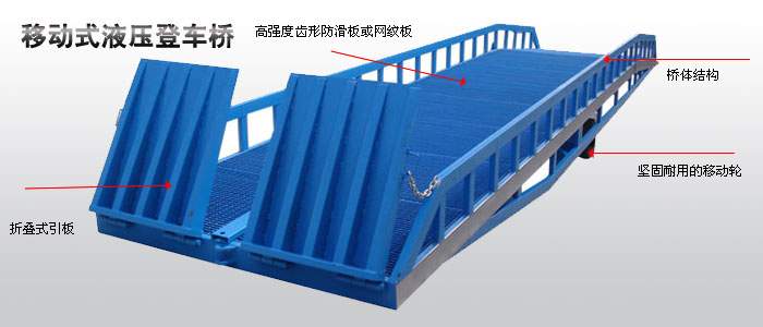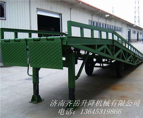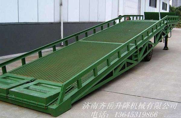 力資源。它可使(shǐ)企業減少大量勞動力,成倍提高裝卸作業效率,加快貨物流通速度,獲取更大經濟效益。移動登車橋被廣泛應用於無裝卸設備的貨台及流動裝卸場(chǎng)所,是與叉車配合使用的(de)貨物裝卸輔助設備。並可以根據不(bú)同的車型及裝車過程車廂的高度變化進行調節。廣泛應用於大(dà)型化工工廠運輸備料、物流集散中心運輸貨物、港口(kǒu)碼頭上下集裝箱,隨著工礦企業的發展移動式液壓登車橋越來越被廣泛的應用到(dào)各行各業卸(xiè)貨中。