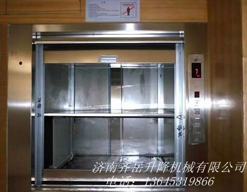 傳(chuán)菜式升(shēng)降機是指用於賓館、廚房、食堂、飯店、 幼兒園、商廈、工廠等部門,用於傳送食品、餐具、日用品的電梯(tī),一般分為落地式和窗口式,可提供快捷、方便、經濟的小型貨物運輸,為用戶大大節省了時間及人力資源(yuán)。