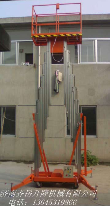 鋁(lǚ)合金式升降機分為單柱式、雙柱式(shì)、三柱式升降機及多柱式等。升高高度在8米以下為單跪柱式,在10米到(dào)14米之間為雙(shuāng)跪柱式,15米到18米(mǐ)之(zhī)間則升為三跪柱式或四跪柱式。通過鋁合金跪柱(zhù)的增加達到設備在高空的穩定性,保證(zhèng)作(zuò)業安全(quán),減小設備(bèi)晃動的幅度,使(shǐ)高空作業更加平(píng)穩(wěn)。