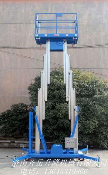 鋁合金式(shì)升降機采用高(gāo)強度優質鋁合金材料,鋁合金升降平台小的空間(jiān)內發揮好的(de)舉升能(néng)力。鋁合金升降平台廣泛用於工廠、賓館、餐廳(tīng)、車站、影劇院、展(zhǎn)覽館(guǎn)等場所,是保養機(jī)具、油漆裝修、調(diào)換燈具、電(diàn)器、清潔保養等用途的伴侶(lǚ)。
