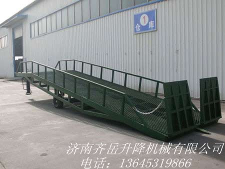 移動(dòng)式登車橋采用人工(gōng)液壓動力,不需外接動力電源,隻需單人操作(zuò),就可以實現(xiàn)貨物的安全快速裝卸,節省(shěng)時間和人力資源。它(tā)可使企業減少大量勞動力,成倍提高裝卸(xiè)作業效率,加快貨物流通速度,獲取更大經濟效益。移動登(dēng)車橋被廣泛應用於無裝卸設備(bèi)的貨台及流動裝卸場所,是與叉車配合使用的貨物裝卸輔助設備。並(bìng)可以根據(jù)不同的車型及裝車過程車廂的(de)高度變(biàn)化(huà)進行(háng)調節。廣泛應用於大(dà)型化工(gōng)工廠運輸備料、物流集散中心運輸貨(huò)物、港口碼頭上下集裝箱,隨著工礦企業的發展移動式液壓登車橋越來越被廣泛的應用到各行(háng)各業卸貨中。