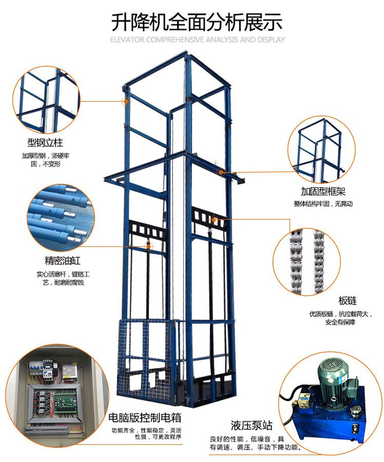 導軌(guǐ)式升降平台提升機主要用各種工作層(céng)間貨物上下運送;立體車庫和地下車庫二、三層高樓間、無法開挖地坑場所、頂層高度不能到達要求的場合等比較難解決的狹小(xiǎo)空間,將竭盡全(quán)力為你打量身打(dǎ)造高效率的送貨平台,產品液壓(yā)係統設置(zhì)防墜、上下層門互動連(lián)鎖,各樓層(céng)和升降台工作台麵均可(kě)設置操作按(àn)鈕,實現多點控製。產品結構堅固,承載量大,升降平穩,安裝維護簡單方便,是經(jīng)濟實用的低樓層間替代電梯的理想貨(huò)物輸送設備。