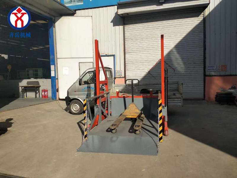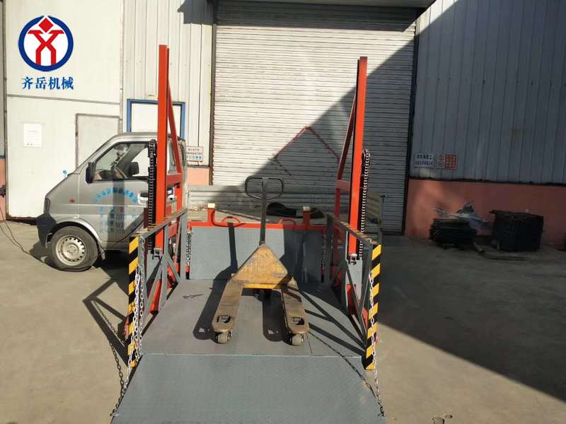 4.裝卸平台底架下設有緩衝 橡膠墊,在平台(tái)下降到地麵時起到緩衝作用減小衝擊;